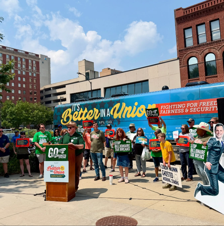 AFL-CIO Tour Bus Joins AFSCME in Iowa to Hold Lawmakers Accountable